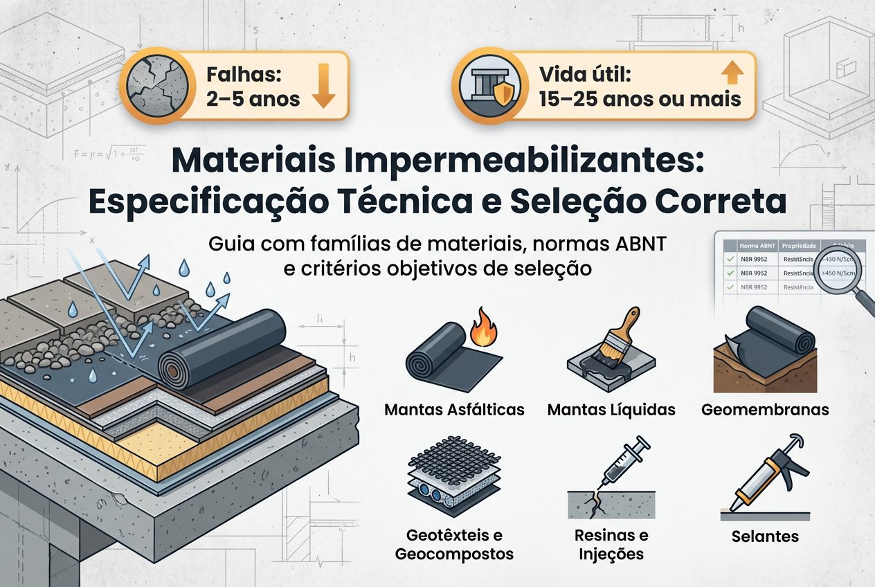 Dessa forma, este guia apresenta as principais famílias de materiais impermeabilizantes, suas propriedades técnicas, normas da ABNT, tabelas comparativas e critérios objetivos de seleção.
