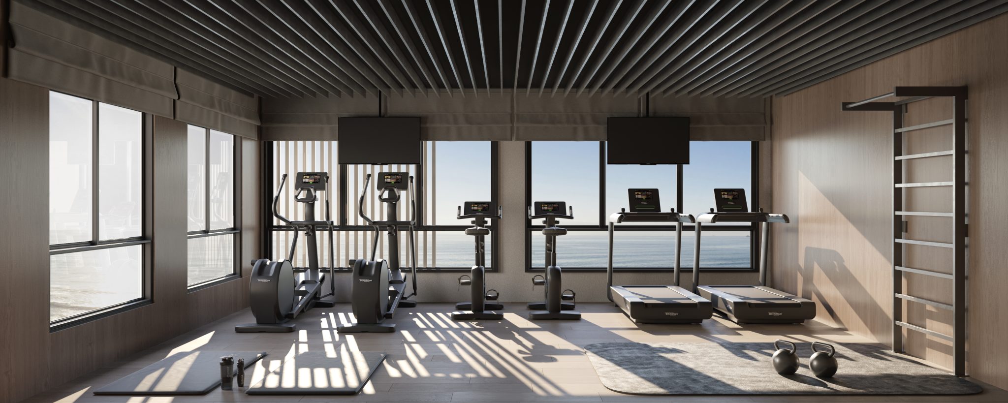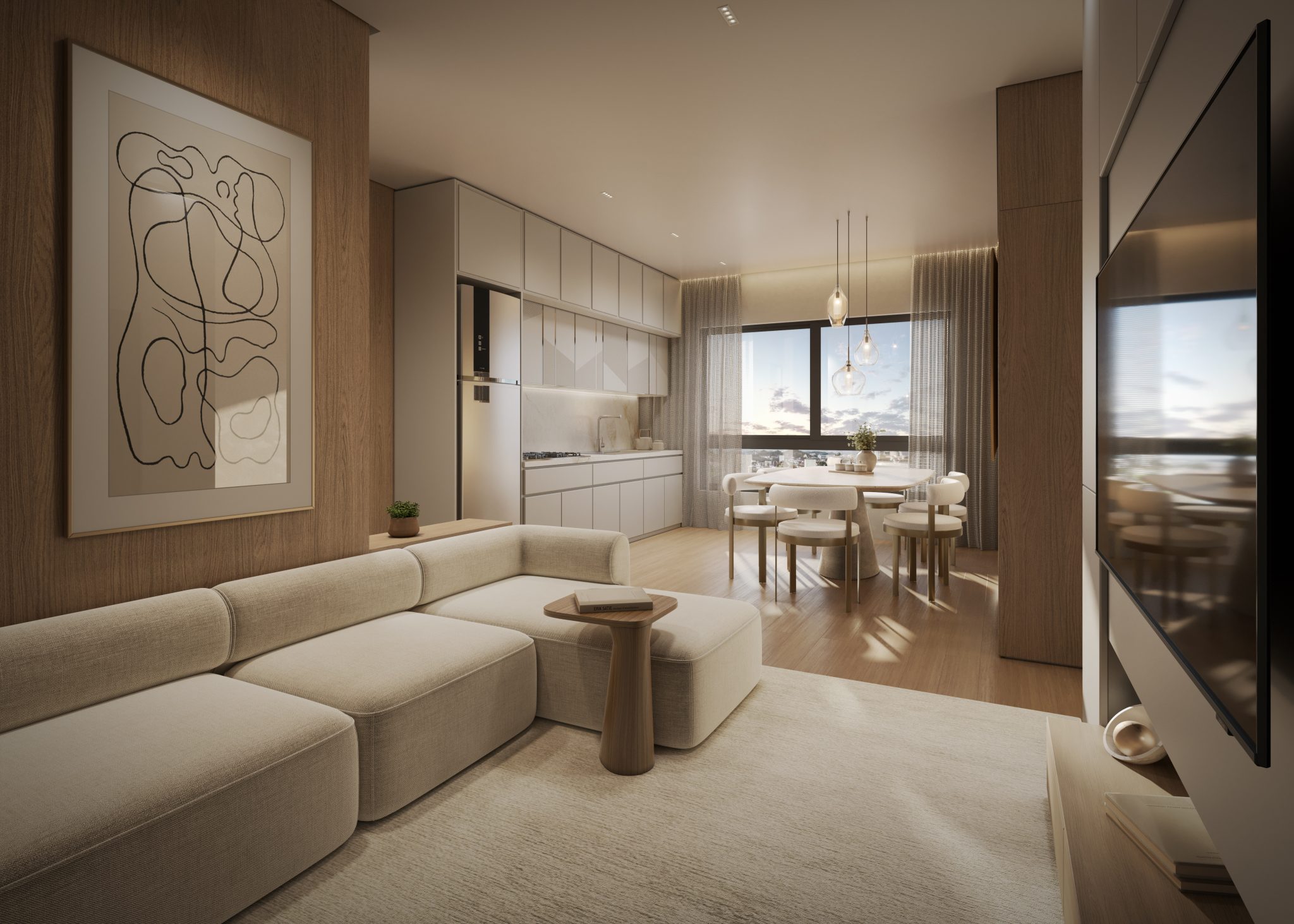 Em primeiro lugar, a volumetria do Di Trapani destaca-se na linha do horizonte da cidade. Nossa equipe desenhou uma fachada que equilibra tons sóbrios de cinza com o frescor do paisagismo vertical presente em diversas sacadas. Além disso, utilizamos amplas superfícies envidraçadas e brises metálicos que conferem um ar cosmopolita ao prédio.